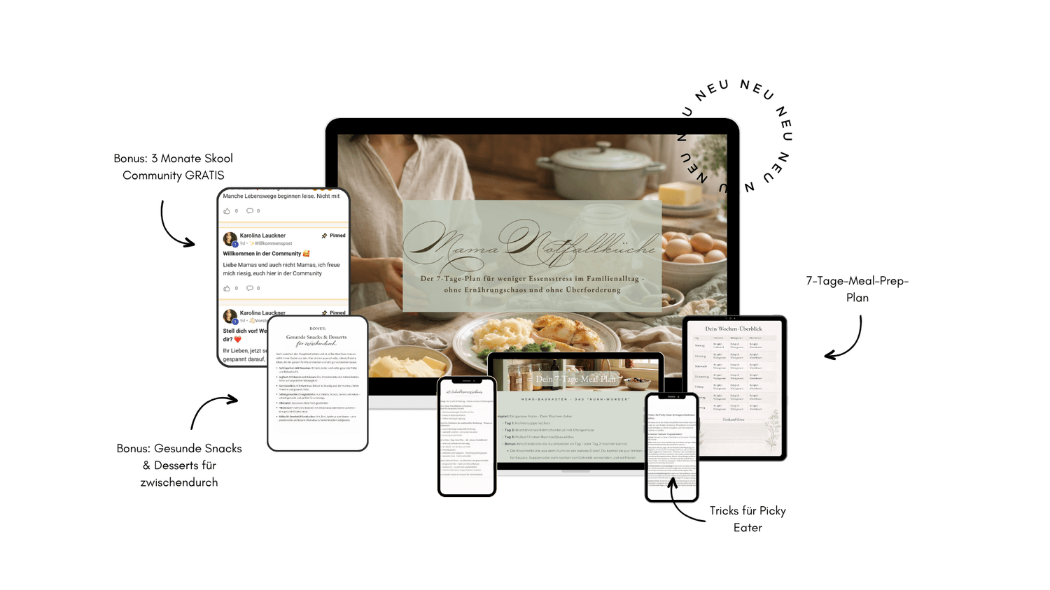 Die Mama-Notfallküche nimmt dir diese Entscheidung für 7 Tage ab - mit einem einfachen, nährenden Plan, der sich an eueren Alltag anpasst.